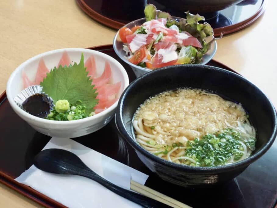 ごま油香る特製ダレが、まぐろと白ご飯の相性を引き立てます。まぐろシーザーサラダはさっぱりとした味わいで、うどんの麺には「おから麺」を使用。満足感がありながらも、ヘルシーなメニューです。