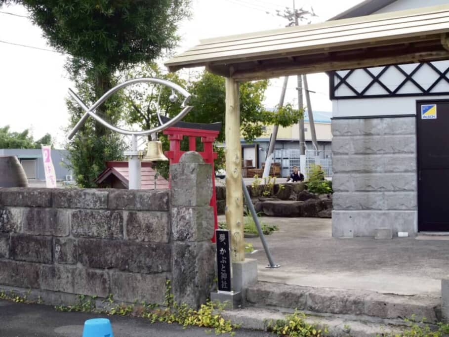 まぐろの館の敷地内には、漁業のまちを象徴する「夢かぶと神社」があります。航海の安全や大漁祈願、家族の幸福を願って建立された神社で、訪れる人々に静かな癒しを与えています。